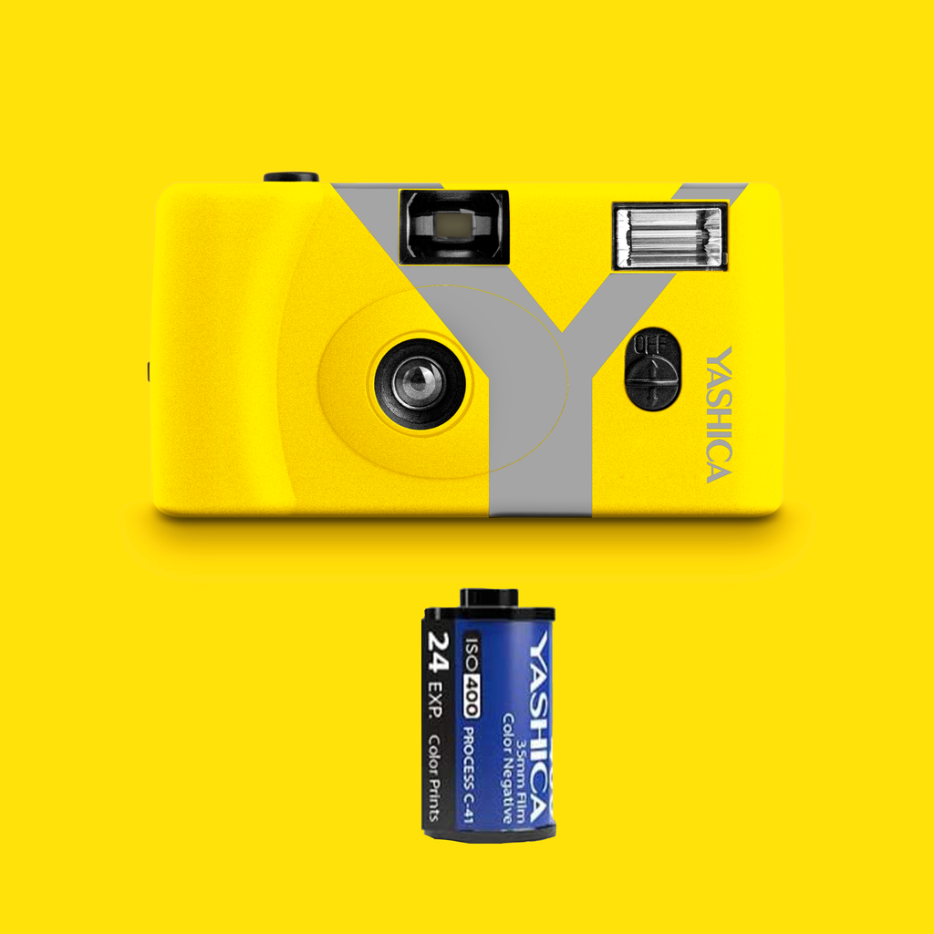 The Yellow Yashica MF-1Y Snapshot 35mm Film Camera is a fun and simple way to bring back the lost art of casual film photography. Ready out of the box with everything you need to tell your story, the colorful MF-1 makes it easy for you to experience the magic of film with its versatile 31mm lens and built-in flash that ensures every scene is lit consistently. Owing to its relatively wide field of view, the 31mm captures as much of the world around you as possible, while its f/11 aperture keeps everything in focus. This reusable camera, equipped with an optical viewfinder, is optimized to shoot with ISO 400 film, and comes preloaded with a roll and a AA battery to power the flash. New to the MF1-Y is the classic Yashica 'Y' on the front of the camera.